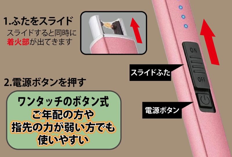 - ロウソクや蚊取り線香、アロマなど室内でのちょっとした点火時に便利です。