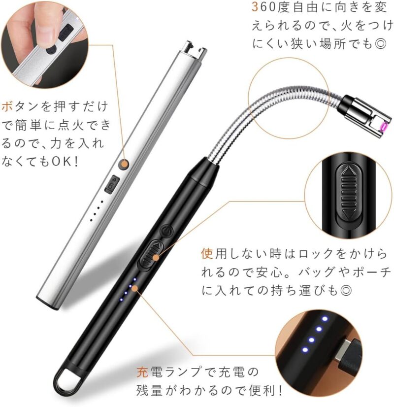 ・スティック型:キャンドルやコンロ着火に便利、アウトドアやキャンプに最適